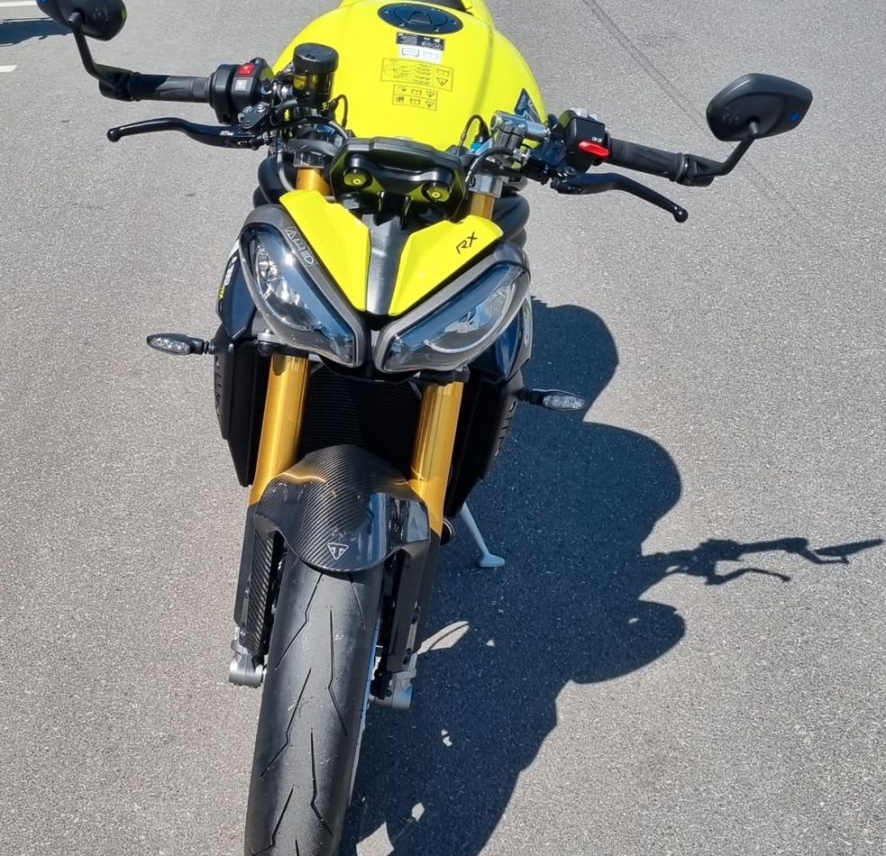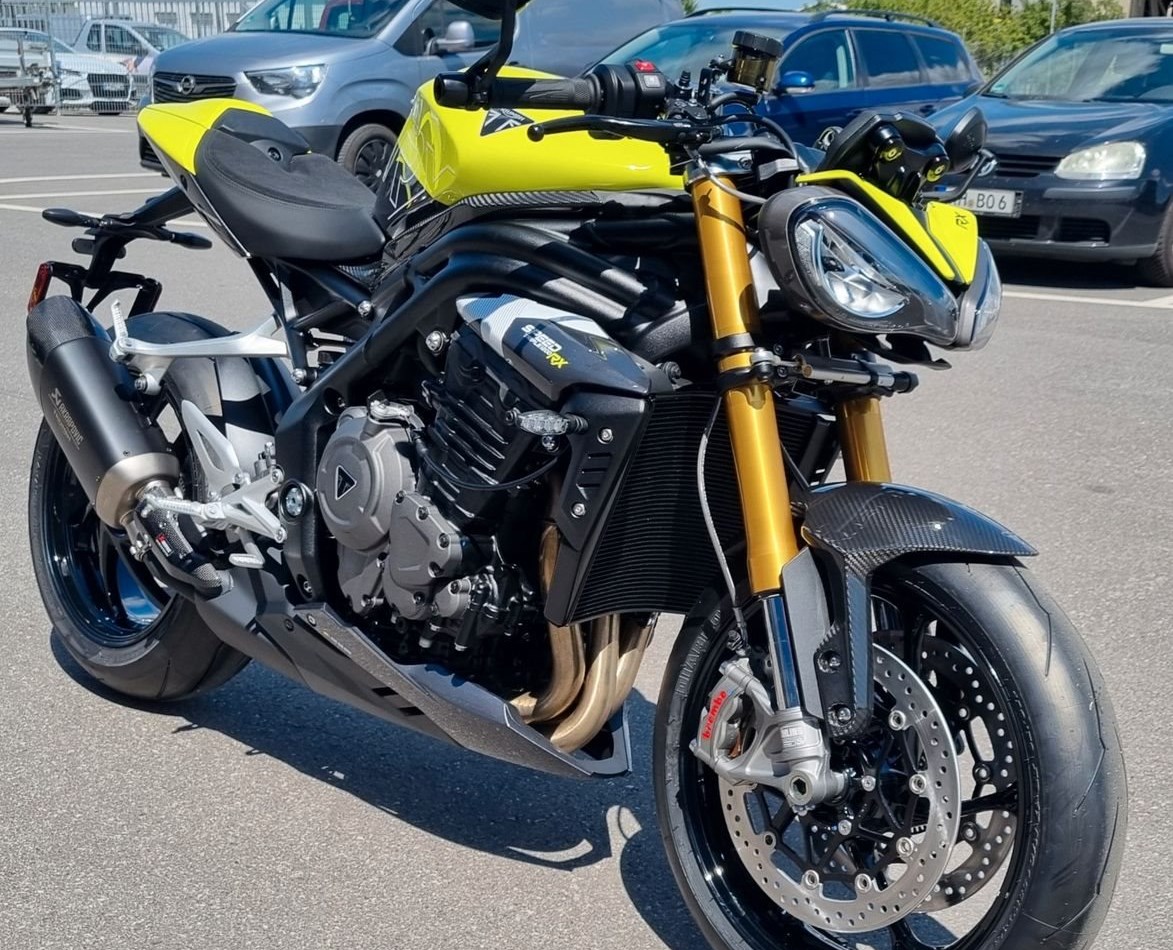 Akrapovic Schalldämpfer aus Titan, Brembo Stylema Bremssättel und MCS Hauptbremszylinder, Stummellenker, Wheelie Control, Mechatronischer Lenkungsdämpfer von Öhlins, ÖHLINS Smart EC 3.0 semi-aktives Fahrwerk, Slide Control, Supercorsa SP V3 Reifen, Traktionskontrolle, Triumph Schaltassistent, Optimiertes Kurven-ABS (OCABS) 4 Jahre Triumph HerstellergarantieFür eine Besichtigung oder Probefahrt kontaktieren Sie uns gerne.