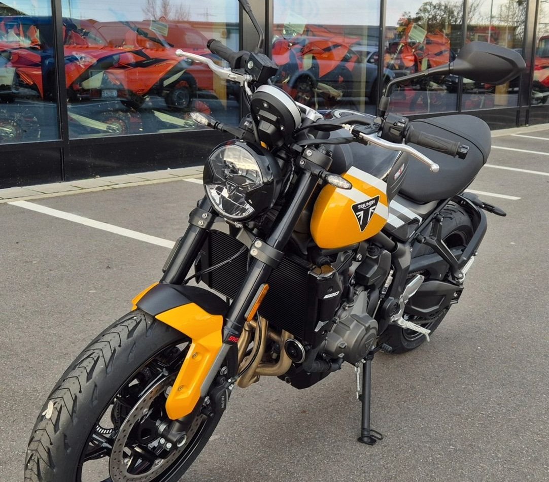 Das in ihrer Klasse unerreichte Maß an Technologie zur Optimierung des Fahrerlebnisses ist jetzt serienmäßig. Dazu gehören die 3 Fahrmodi, darunter ein aufregender neuer Sportmodus, ein Tempomat, optimiertes Kurven-ABS und Traktionskontrolle, sowie der Triumph Shift Assist für kupplungsloses Hoch- und Runterschalten. Die Bluetooth-Konnektivität sorgt für eine Turn-by-Turn-Navigation und volle Telefonfunktionalität und bietet so einen unvergleichlichen Fahrerkomfort.