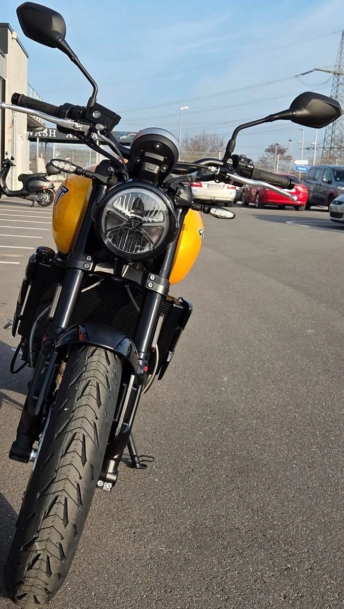 Fahrerorientierte Technik. Alles Wichtige - nichts Überflüssiges. Neigungswinkelabhängiges ABS und Traktionskontrolle, 3 Fahrmodi sowie der Triumph Schaltassistent für kupplungsloses Hoch- und Runterschalten.