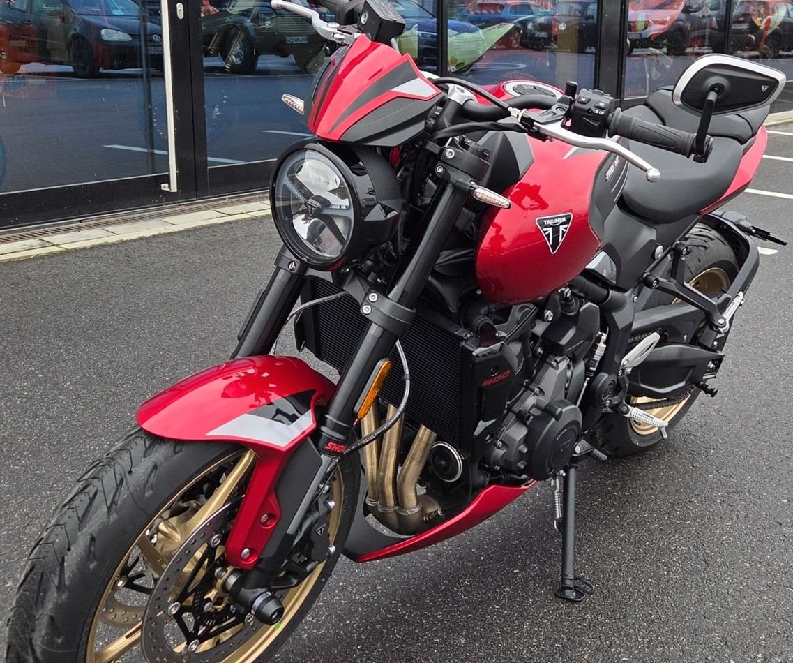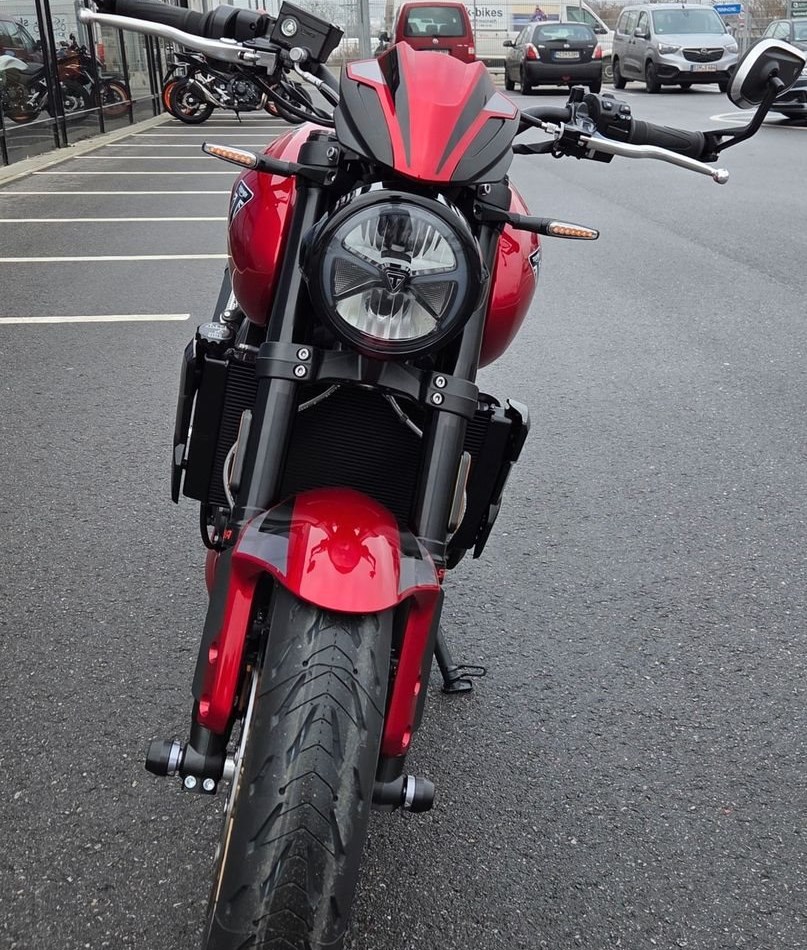 Direkte Leistungsentfaltung, kraftvolles Drehmoment im mittleren Drehzahlbereich und der unverwechselbare Triple-Sound - mit drei Fahrmodi für optimale Leistungsentfaltung. Mit einem Gewicht von weniger als 200 kg vollgetankt verbindet das agile, einstellbare Fahrwerk präzises Handling mit souveräner Beherrschbarkeit. Gebaut für Fahrer, die den Nervenkitzel der Leistung lieben, vereinen Triumph Roadsters präzise Ingenieurskunst mit einem markanten, reduzierten Stil. Mit ihrem muskulösen Auftritt, ihrem präzisen Handling und den reaktionsfreudigen Dreizylindermotoren schafft jede Fahrt eine direkte Verbindung zwischen Fahrer und Maschine