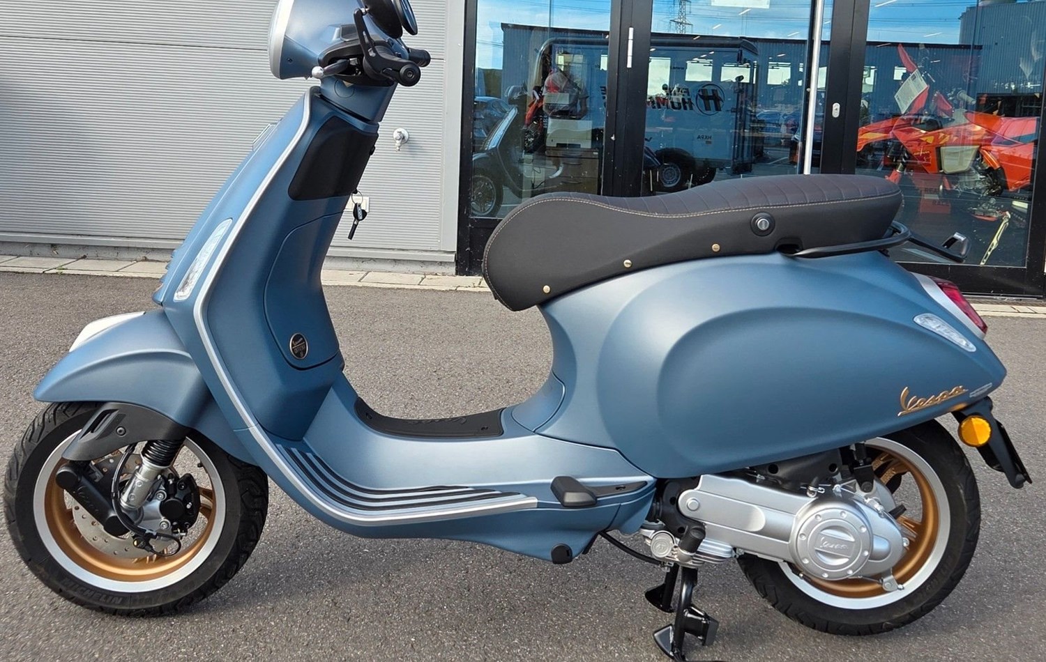 Stil, der auf Innovation basiertDie Vespa Primavera Officina 8 bringt das Erbe der Vespa mit Eleganz und einem modernen Touch neu auf die Straße. Die intensive blaue Lackierung ist von den Industriemaschinen in der historischen Werkstatt 'Officina 8' des Piaggio Werks inspiriert. Eine Hommage an die Tradition, die zu einem unverwechselbaren Symbol für Stärke und Identität geworden ist. Die metallenen Details, die polierten Messingnieten und die Kontrastnähte auf dem Sattel zeugen von der Genialität, Sorgfalt und Leidenschaft, die Vespa seit jeher auszeichnet. PROBEFAHRT / FINANZIERUNG / INZAHLUNGNAHME MÖGLICH ! WIR VERKAUFEN UND LIEFERN DEUTSCHLANDWEIT !FOR EXPORT CONTACT US !Wir haben alle CF Moto-, Gas Gas-, Honda, Husqvarna, Indian-, KTM-, Piaggio-, Royal Enfield-,Suzuki-, Triumph-, Vespa- und Zero-Neufahrzeuge lieferbar, sowie eine große Auswahl an Gebrauchtfahrzeugen.Eingabefehler, Irrtümer und Zwischenverkauf unter Vorbehalt.Große Bekleidungs-, Zubehör- und Helmauswahl.Weitere Fahrzeuge und Informationen finden Sie unter www.sk-bikes.deÖffnungszeiten: Wochentags 9 - 14 Uhr und 15 - 18 Uhr, Samstag 9 - 14 Uhr