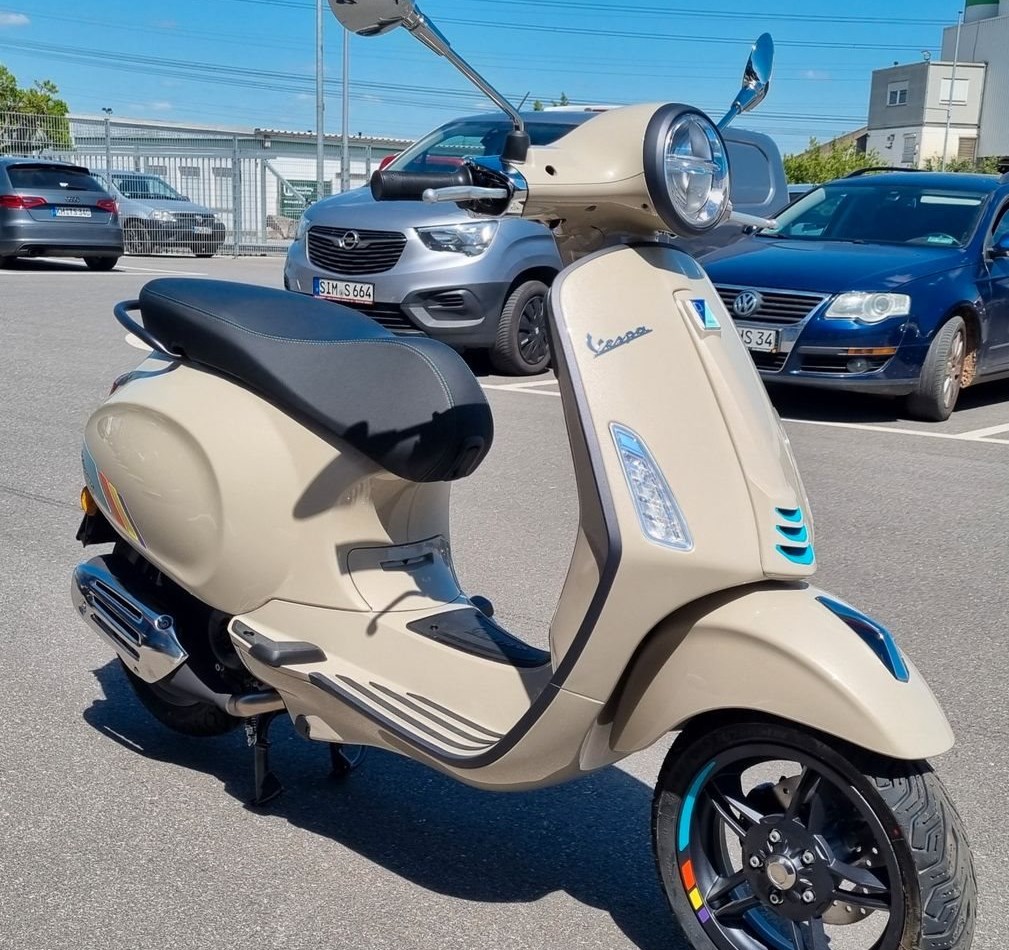 Kultiviert und modernDie Vespa Primavera S bietet die schlichte Eleganz einer italienischen Ikone, aber mit einer modernen, sportlichen Note. Chromdetails und graphitgraue Konturen setzen die Formen in Szene, während eine lebhafte Farbpalette, die sie in der Menge unübersehbar macht, den letzten Schliff verleiht.