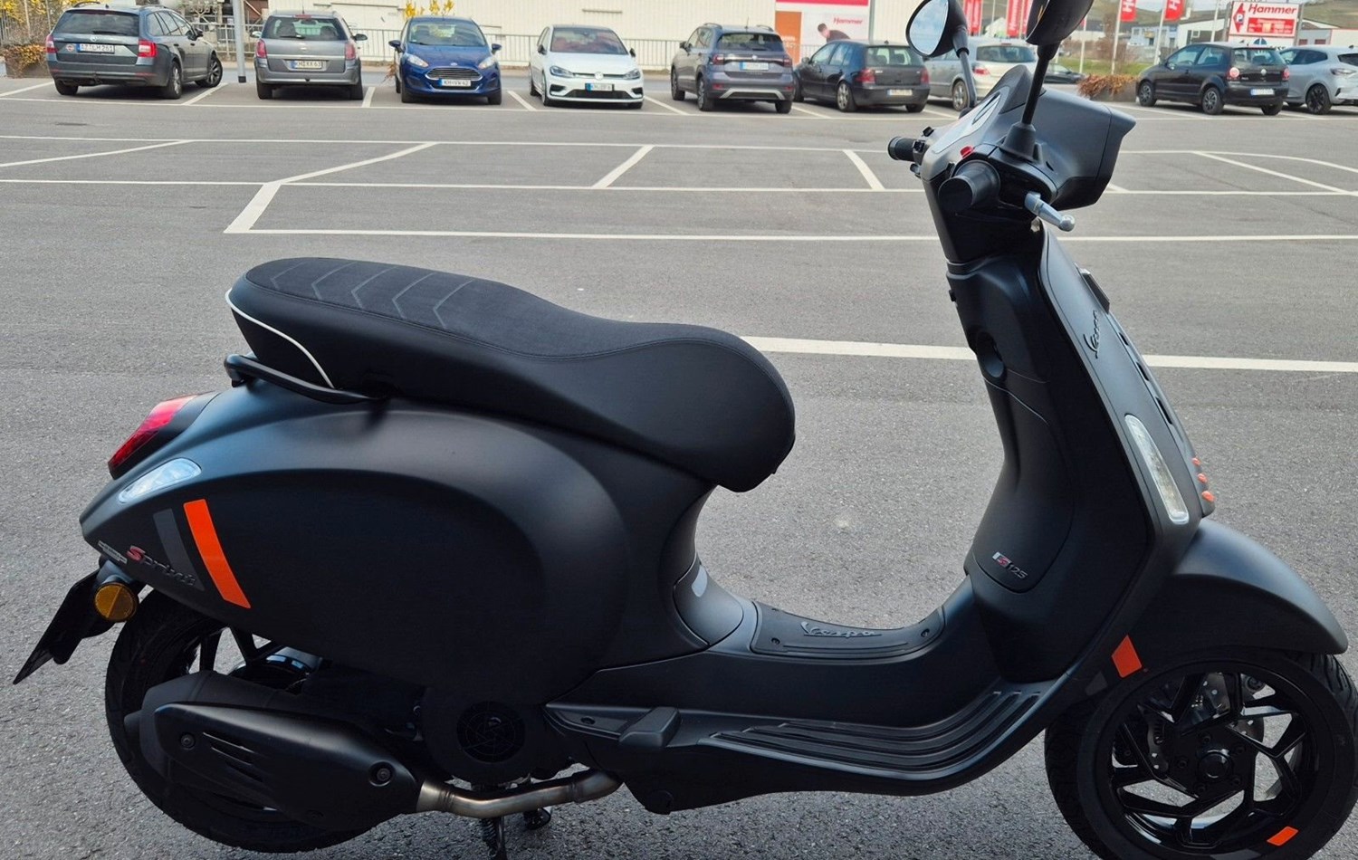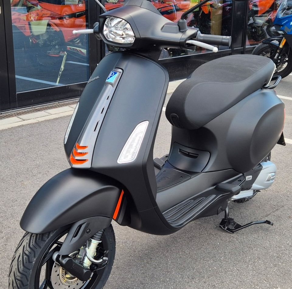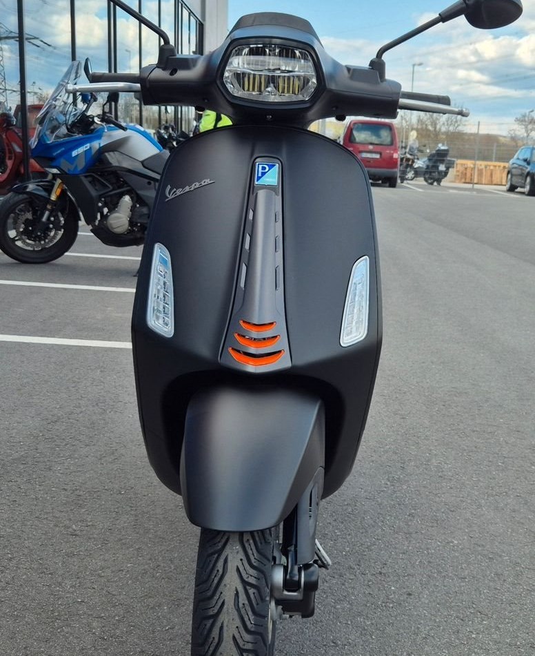 Ein faszinierender LookDie Vespa S Sprint verkörpert den unverwechselbaren Charakter der Generationen von Vespa Sportmodellen, die in jedem Umfeld einen Hauch von Dynamik versprühen. Ihr sportlicher Look wird durch kontrastierende Grafiken unterstrichen, während schwarze Details wie der rechteckige Rahmen um den Scheinwerfer und die neu designten 6-Speichen-Aluminiumfelgen für eine raffinierte Note sorgen.